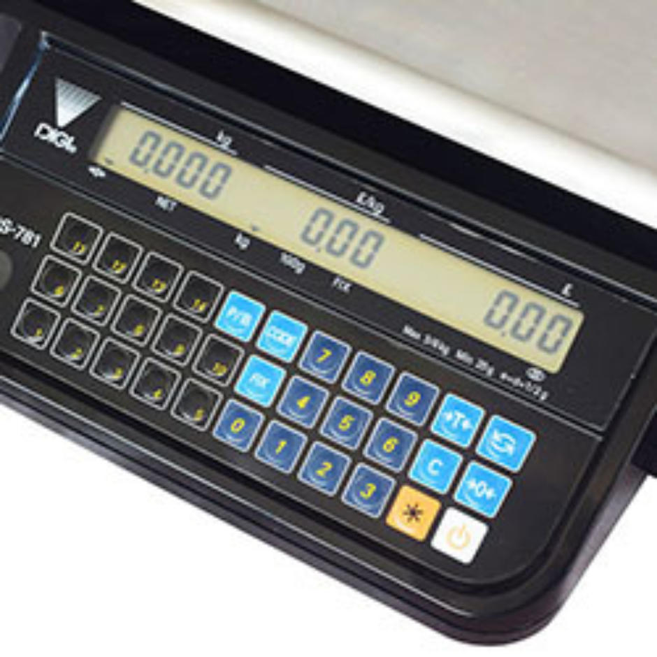 The Digi DS-781 is a price computing retail scale which has a waterproof keyboard and splashproof housing. It features Tare and Zero functions, 99 PLUs and 16 pre set keys for faster transactions.