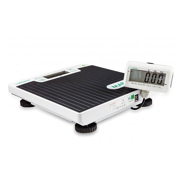 If you need a portable, highly robust weighing scale for weight sensitive environments, choose the M-425. This medical floor scale includes a Hold function, meaning the patient’s weight will freeze on the display even if they move about on the scale. A BMI function allows you to calculate a patient’s BMI by entering their height.